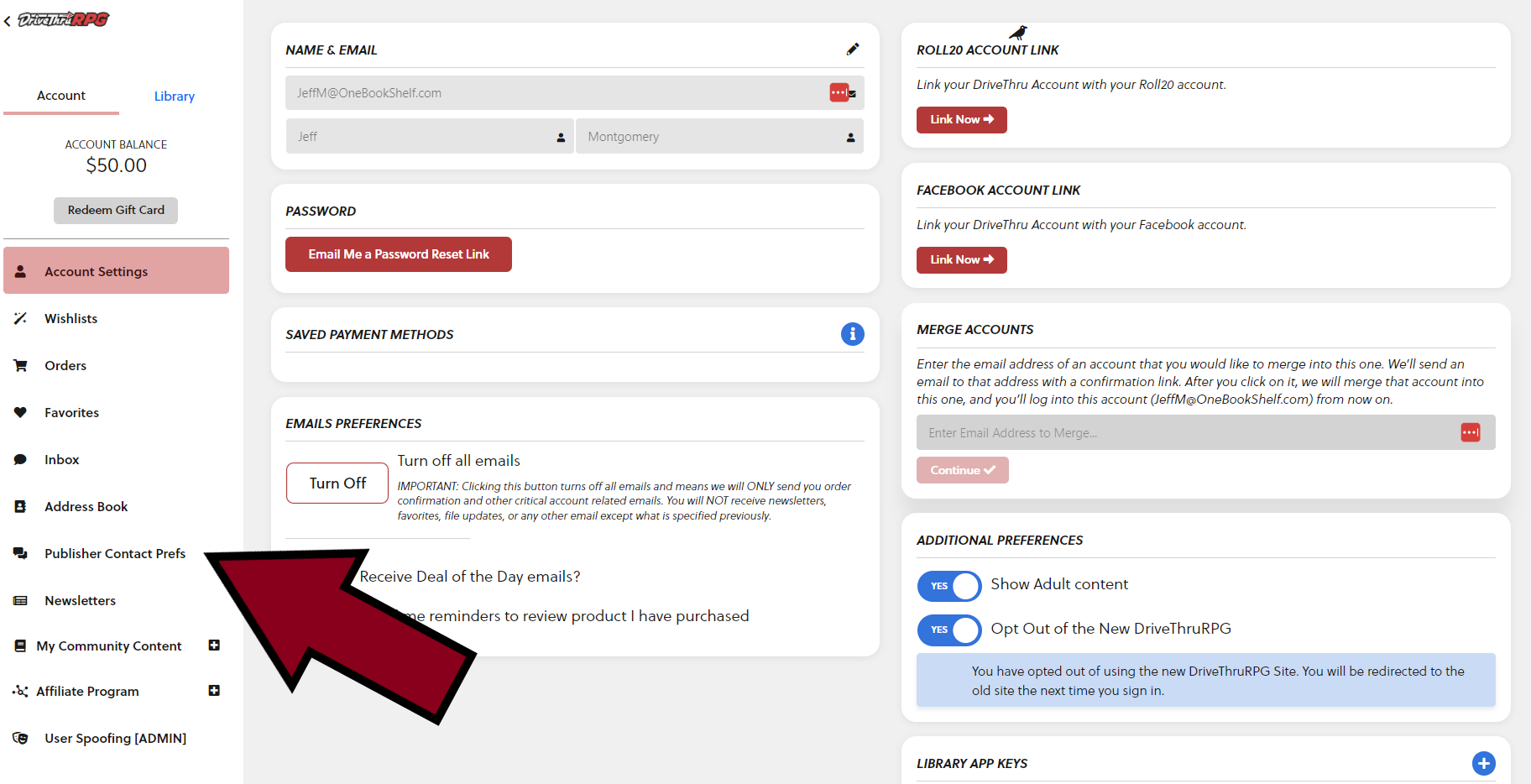 - Such den Abschnitt „E-Mail-Einstellungen” in der mittleren Spalte und leg fest, welche E-Mails du bekommen willst, welche „Angebot des Tages”-E-Mails und welche Produktbewertungserinnerungen.