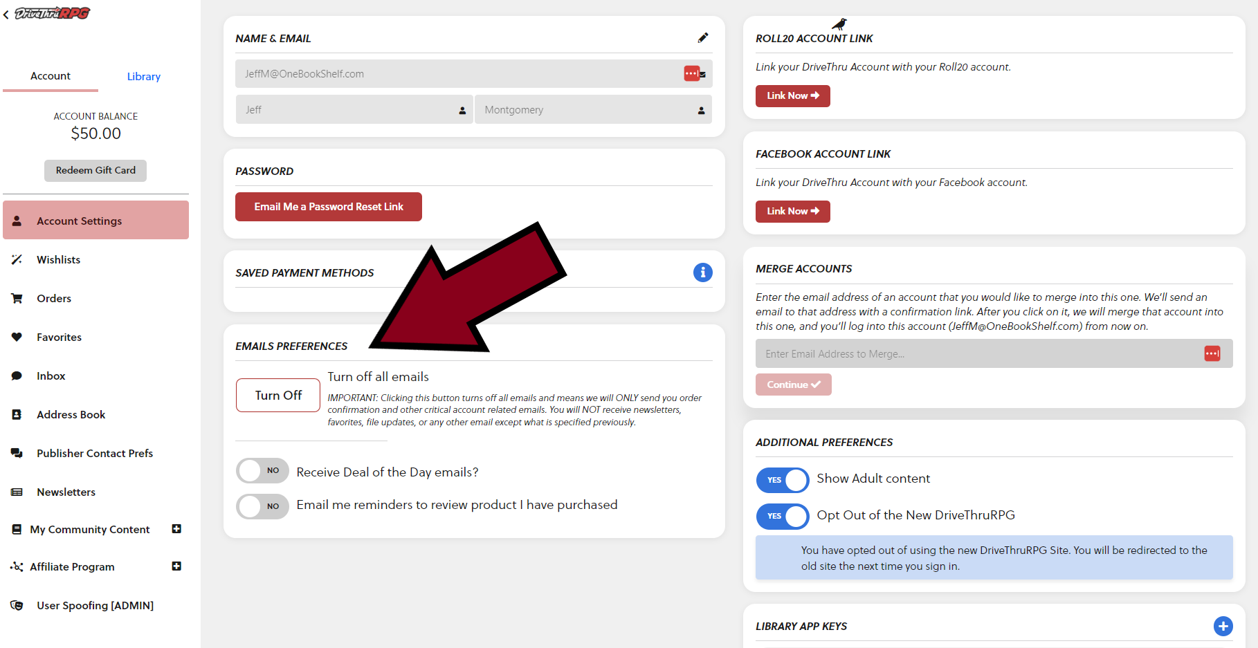 - Trovi la sezione Preferenze e-mail nella colonna centrale e imposti le sue selezioni per tutte le e-mail, le e-mail con l'Offerta del giorno e i Promemoria per le recensioni dei prodotti.